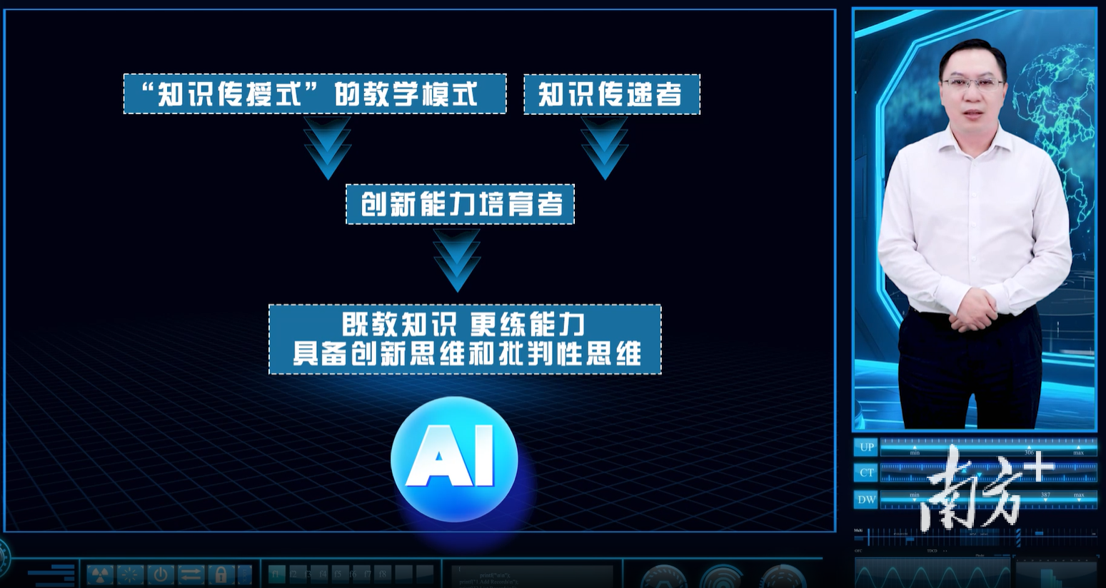 目前,学校的AI应用已实现“教育”与“地方”双服务:在教育领域,AI技术已逐步覆盖教、学、管、研全流程,依托智能教学系统分析学生学习数据,探索“数字赋能大规模因材施教”,已建设70门智慧课程,形成广东省“人工智能+高等教育”典型应用场景等案例。